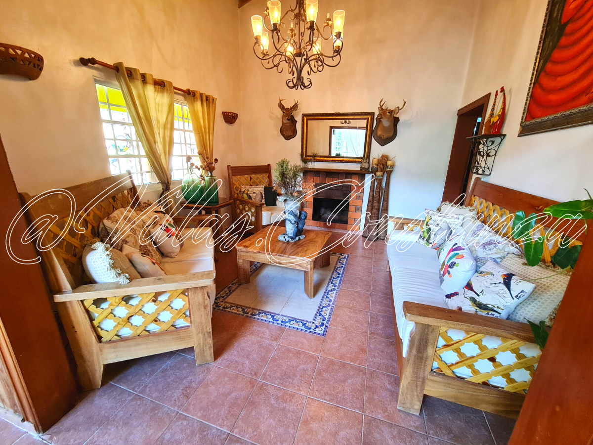 Con 5 amplias habitaciones con 8 camas, 7 baños, sala con wifi, chimenea, cocina con todos los utensilios básicos, Servicios imprescindibles (Toallas, sábanas, jabón y papel higiénico). Equipada con todo lo que necesitas, solo debe traer las comidas.